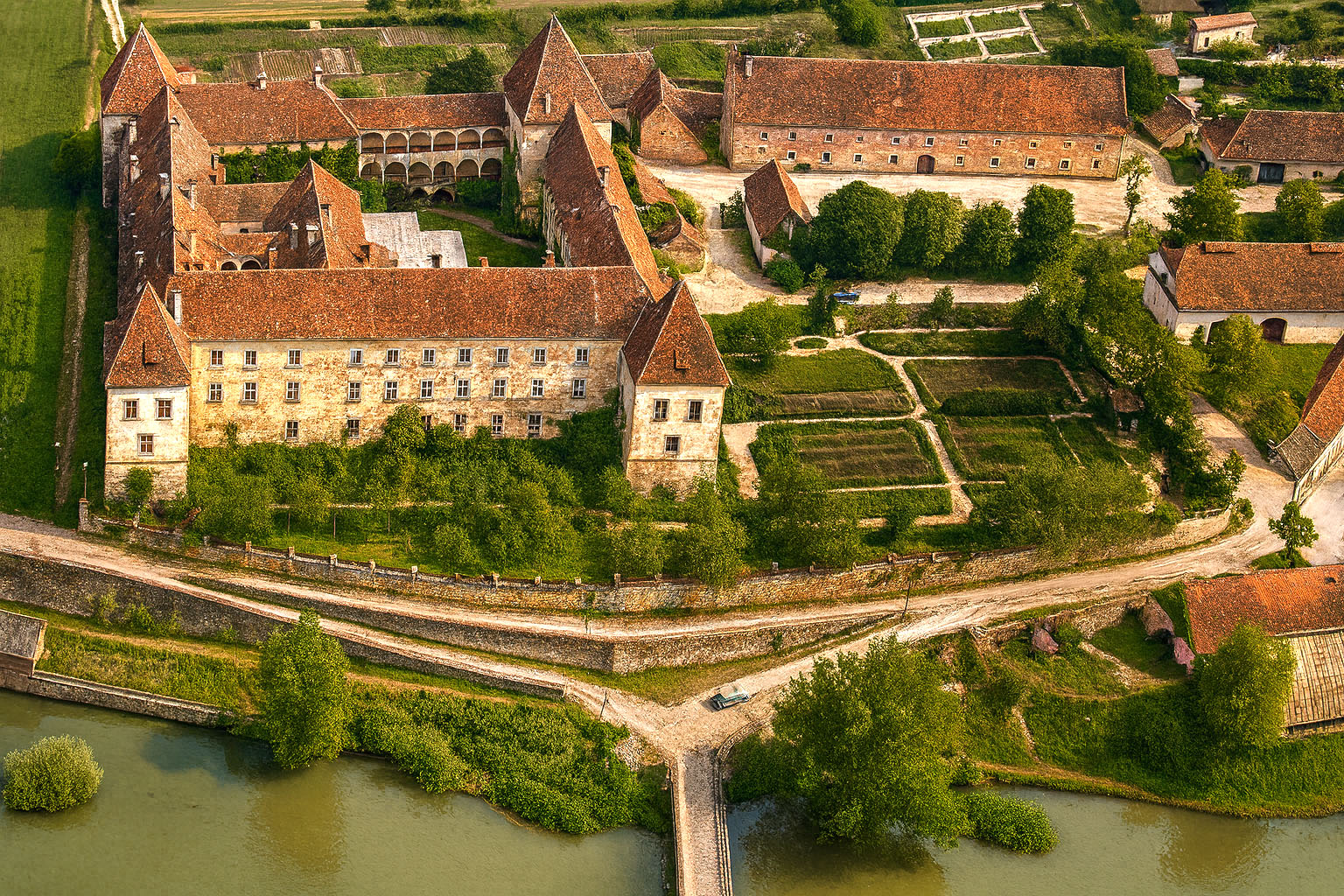 In the village of Soteska on the Krka River in the municipality of Dolenjske Toplice stand the ruins of Soteska Manor, built between 1664 and 1689 at the order of Count Jurij Žiga Gallenberg, the provincial governor of Carniola. The manor was designed in the shape of a four‑leaf clover, a rarity in Slovenian architecture. Next to it, a landscaped park was arranged with a garden pavilion known as the Devil’s Tower. On the opposite bank of the Krka, the ruins of Old Soteska, the original 13th‑century castle, are still visible today.