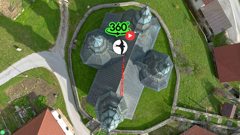 Opomba: Lokalni opis poudarja »skoraj bizantinsko« podobo, ki naj bi bila dediščina stikov flosarjev z vzhodnimi kraji; to je interpretativni namig kulturnozgodovinskega spomina, ne stroga arhitekturna atribucija.